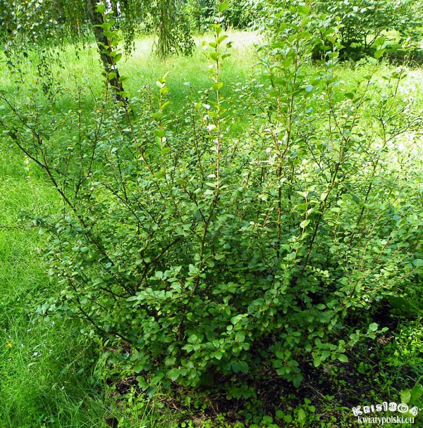 Niski i silnie rozgałęziony krzew osiągający wysokość do 2 m.