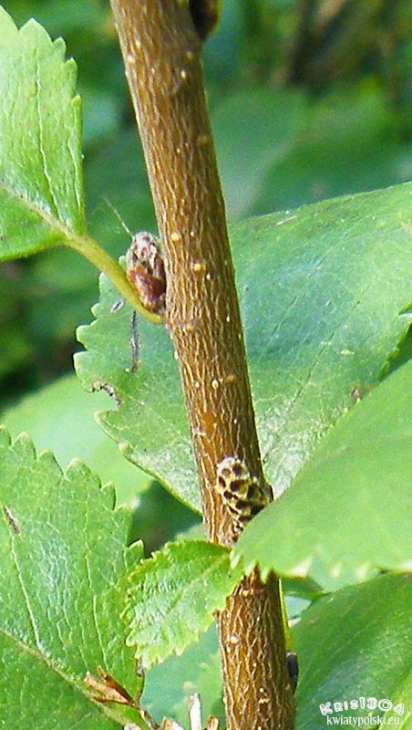Młode pędy gęsto pokryte białymi brodawkami o końcach czasami nieco owłosionych. Pędy skrócone drobne. Kora wszystkich pędów ciemnoszara.