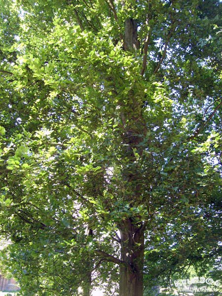 Dorasta do ok. 25-30 m wysokości. Korona gęsta, szeroka, nisko osadzona ,jeżeli drzewo rośnie samotnie, u drzew rosnących w zwartych drzewostanach, pnie są wysokie, gonne (bez bocznych gałęzi). Osiąga wiek do 350 lat. Drzewa rosnące w odosobnieniu wykształcają gruby i dość krótki, często nieregularny pień, ich korona jest zwykle bardzo szeroka i kopulasta, gęsto ugałęziona od samego dołu, masywne konary są niezwykle rozłożyste, w dolnej części skierowane zwykle niemal poziomo.