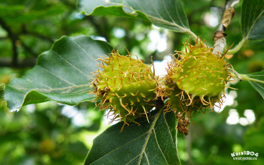 Trójgraniaste, brązowe orzeszki nazywane bukwią, błyszczącobrązowe, zebrane po dwa (rzadziej pojedyncze)z miękko owłosioną, zdrewniałą torebką - kupulą, pękającą na drzewie, otwierającą się po dojrzeniu czterema klapami. Są jadalne i bardzo pożywne, mają słodkawy smak, wytwarza się z nich olej.