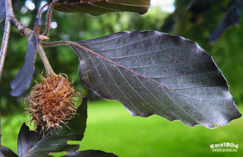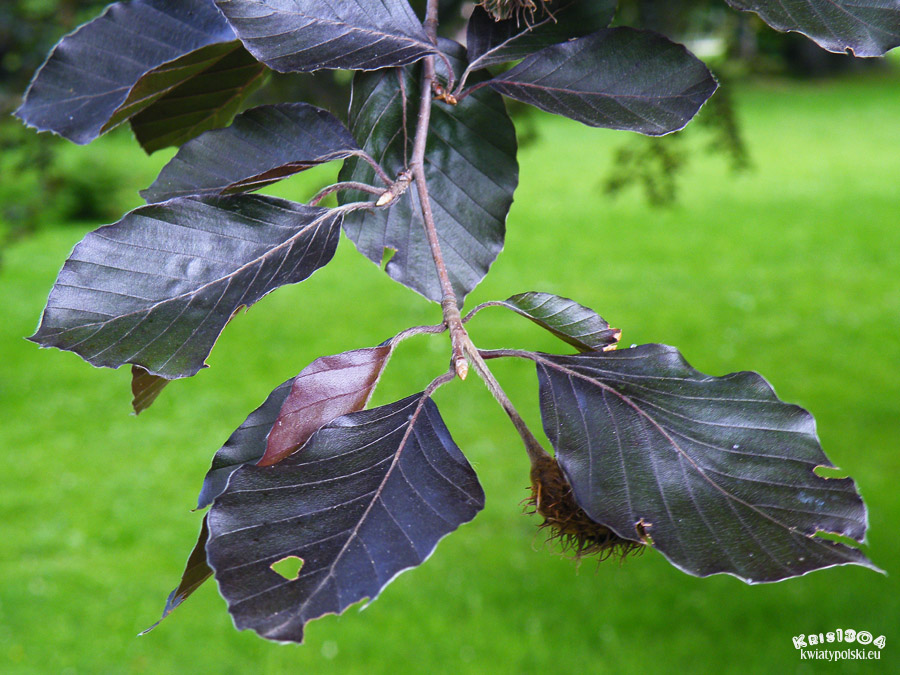 Liście wiosną intensywnie purpurowoczerwone. Latem purpurowe.
