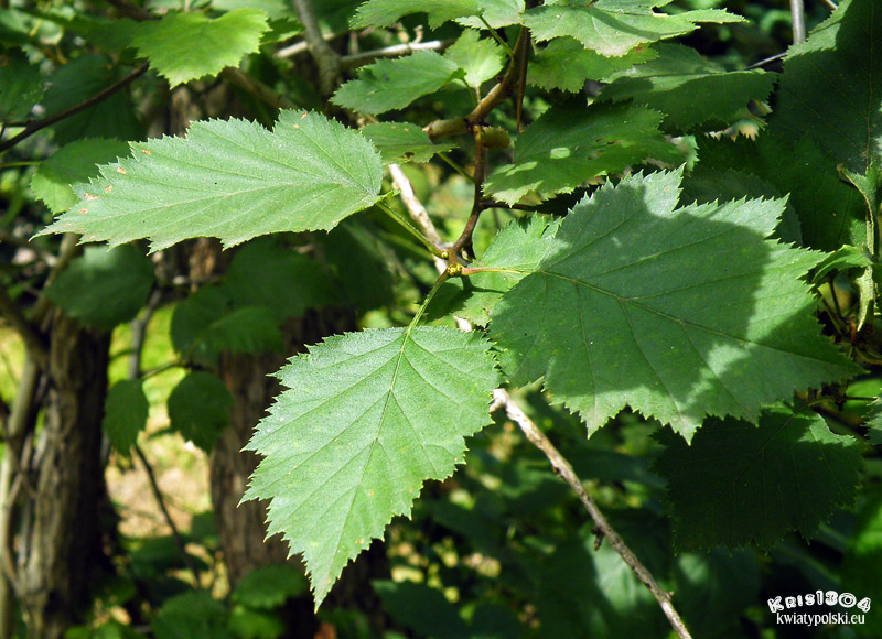 Długości do 7 cm, eliptycznojajowate, zaostrzone, u nasady klinowate, z 4-6 parami krótkich, zaostrzonych klap, brzeg blaszki podwójnie piłkowany. Liście żywozielone, od spodu nieco jaśniejsze, po obu stronach prawie nagie.