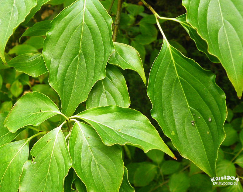 Liście koloru zielonego, lancetowate o długości ok. 6-15 cm.