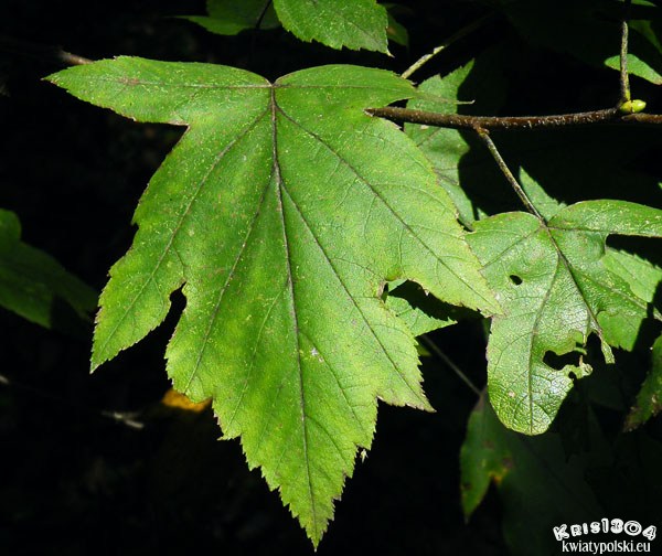 Klapowane, pojedyncze, szerokojajowate, długości do 10 cm z 3 - 5 parami nierówno ząbkowanych i zaostrzonych klap. Dolne klapy dłuższe, prawie poziomo odstające, rozwarte pod kątem prostym, przypominają duże liście klonu. U nasady zaokrąglone lub płytko sercowate, na brzegu drobno piłkowane, osadzone na cienkim, długim ogonku. Liście z brzegu ciemnozielone, pod spodem jaśniejsze. Jesienią przebarwiają się na czerwono i brązowo.