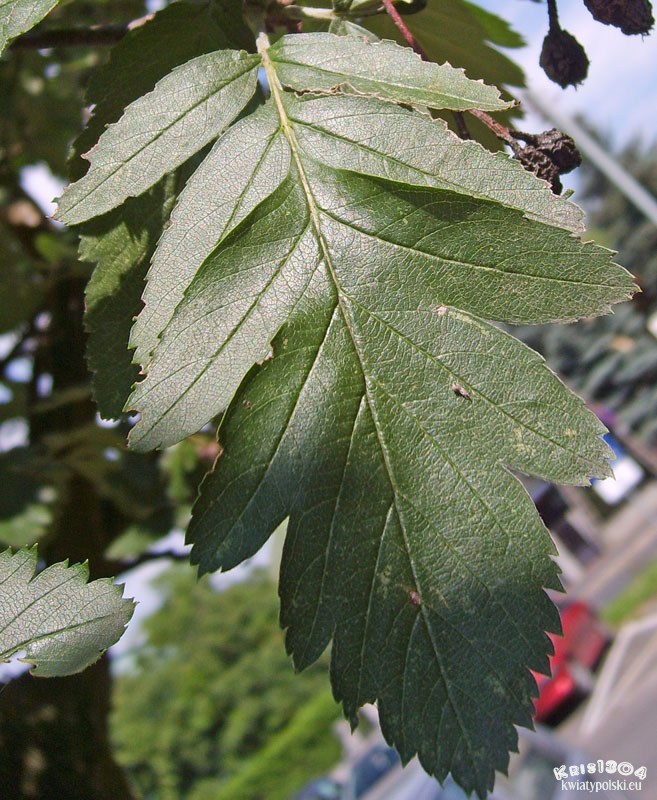 Długość do 10 cm. W dolnej części pierzaste, w górnej pierzasto klapowane, o ząbkowanych brzegach. Jesienią przebarwiają się na czerwonobrązowo[4]. Podobne liście ma jarząb szwedzki, ale w dolnej części nie są pierzaste.