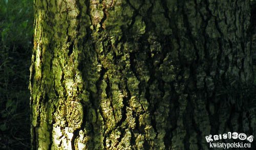 Początkowo gładka, matowoszara, dopiero u starych drzew prostokątnie popękana lub podzielona na płytki.