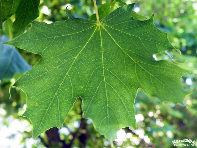 Duże, nagie, o długim ogonku, (z którego po przełamaniu wydziela się mleczny sok) 5-7 klapowe, do 15 cm długości. Klapy zatokowo wycinane z dużymi, nielicznymi, ostrymi ząbkami. Liście o nerwacji dłoniastej. Ustawienie naprzeciwległe na bardzo długich (nawet do 20cm) ogonkach.