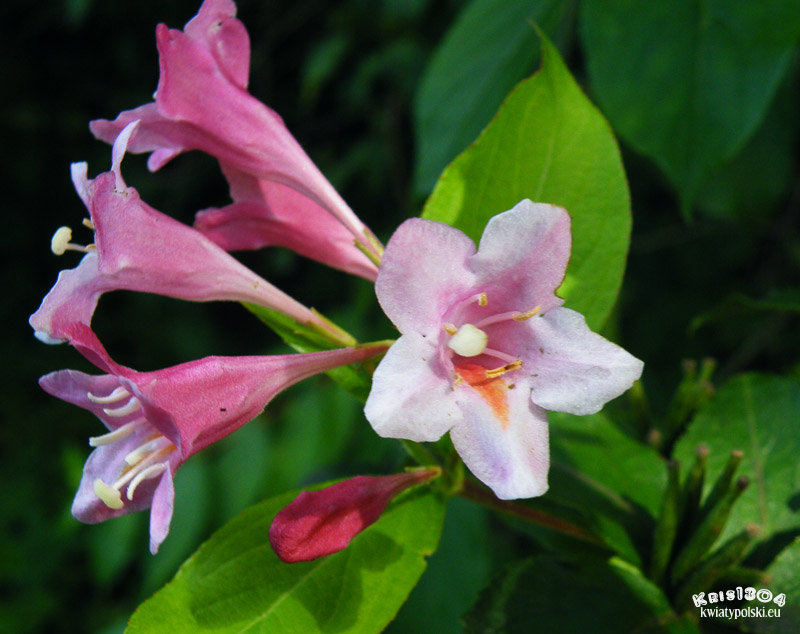 Kwiaty o kształcie dzwonków osadzone są pojedyczno lub po kilka w kątach liści i obficie pokrywają pędy. Ich barwa zmienia się w miarę przekwitania. Kwiaty lejkowate ze zrośniętym do połowy kielichem, cylindryczne, 5-krotne, różowe, wewnątrz jaśniejsze.
