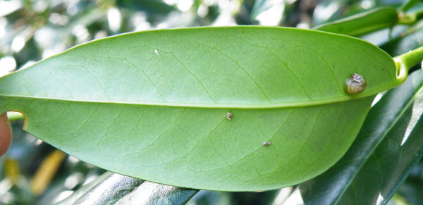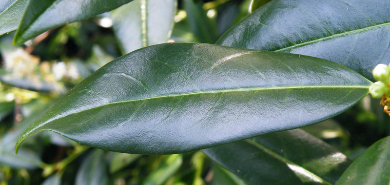 Zimotrwałe, eliptyczne, całobrzegie i skórzaste. Na górnej stronie są błyszczące i ciemnozielone (przypominają liście laurowe i stąd pochodzi nazwa laurowiśnia).
