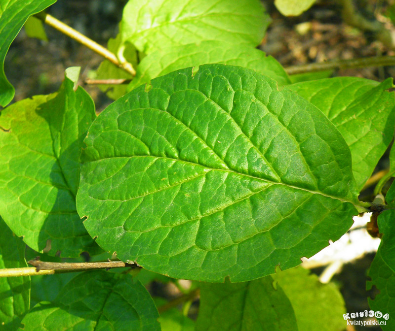 Ciemnozielone, całobrzegie, eliptyczne, krótko zaostrzone, długie do 15 cm.
