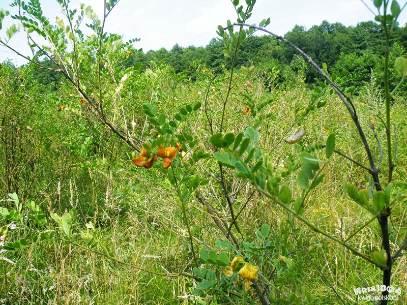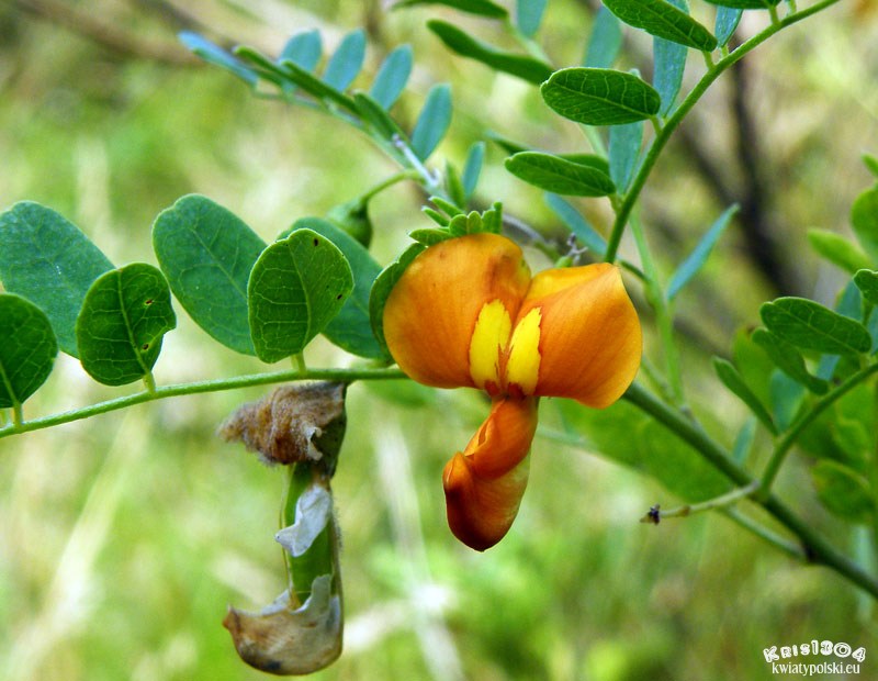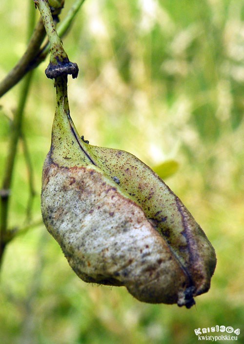 Duży, błoniasty i rozdęty strąk o długości 6-8 cm. Na szczycie, lekko rozchylony.