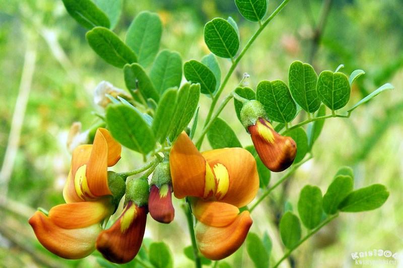 Obupłciowe, zebrane w grona po 3-8 sztuk. Kwiaty motylkowe, żółte, na żagielku ciemnobrązowa plama. Mniejsze od liści moszenek południowych, brązowoczerwone.