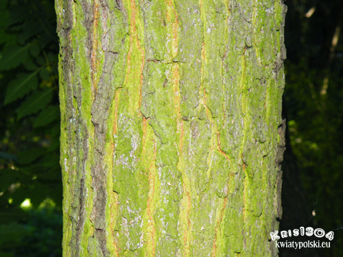 Pędy w pierwszym roku delikatnie omszone, dwuletnie nagie i brązowe. Kora jest spękana podłużnie i tafelkowato.