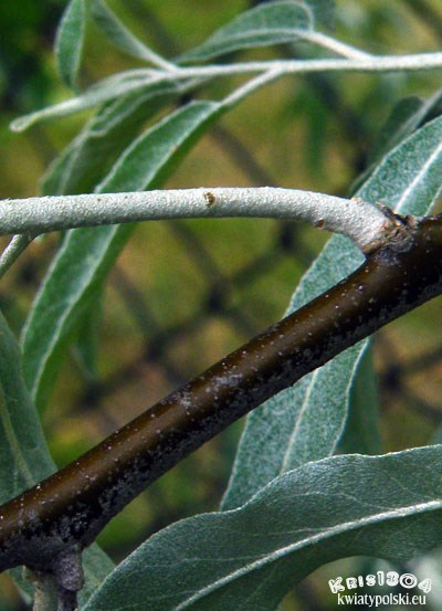 Młode gałązki słabo cierniste; starsze - cierniste, srebrzystobiałe. Boczne gałązki nie drewnieją i nie opadają.