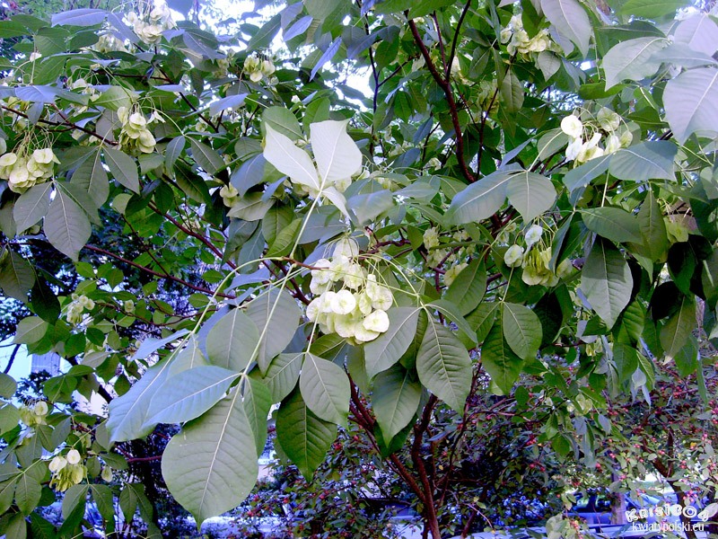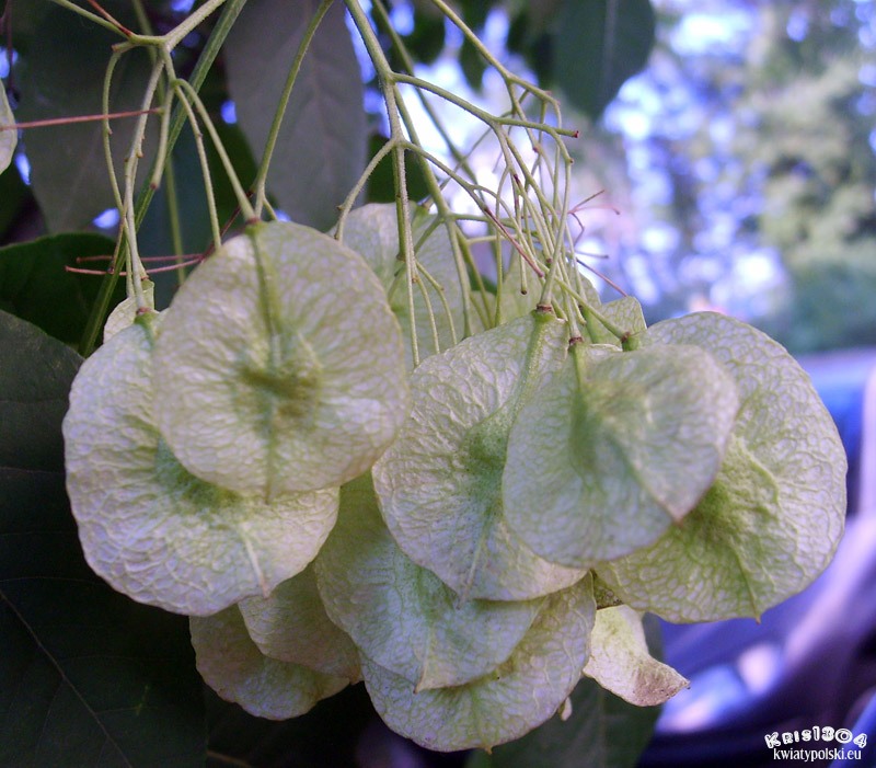 Okrągły skrzydlak z dwoma spłaszczonymi orzeszkami, otoczony w koło szerokim skrzydełkiem . Pachnie chmielem. Podobny do owoców wiązu.