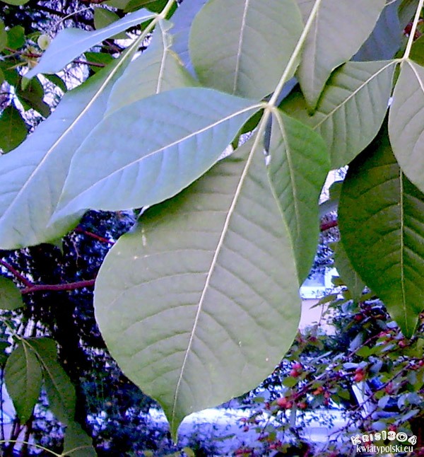 Złożone z trzech całobrzegich, ciemnozielonych listków o długości do 10 cm.