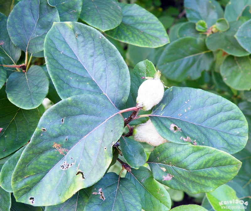 Tzw. owoce jabłkowate, żółte, u większości odmian o średnicy 6 cm, z pięcioma komorami nasiennymi, zawierającymi pestki. Pokryte są kutnerem. Miąższ owoców twardy i mocno cierpki, aromatyczny, z dużą ilością komórek kamiennych.