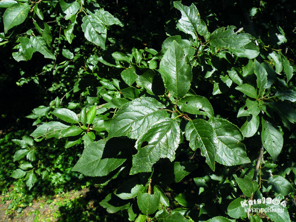 Niskie drzewo do 10 metrów wysokości. Ma nieregularną, sklepioną, luźną koronę na prostym i smukłym pniu. Młode gałązki lśniące.