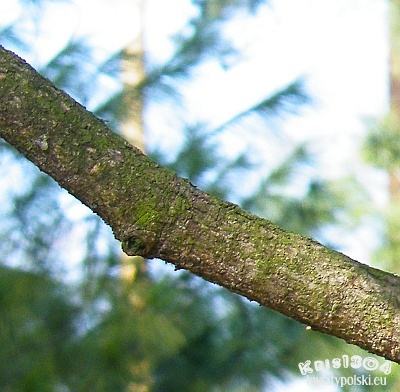U młodych drzew kora jest gładka, szarozielona, z wiekiem ciemnieje i pęka. Młode gałązki rdzawo owłosione, z czasem łysieją.