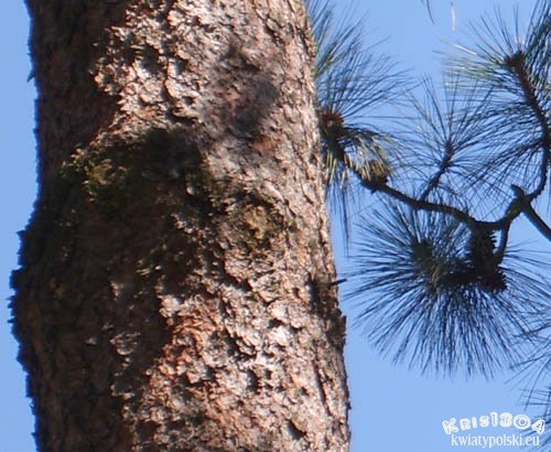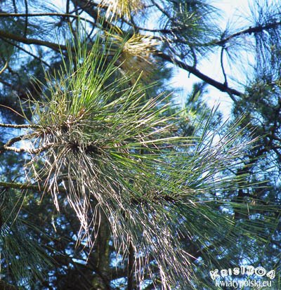Szpilki ciemnozielone, długie - do 25 cm długości, ułożone po 3 na krótkopędzie.