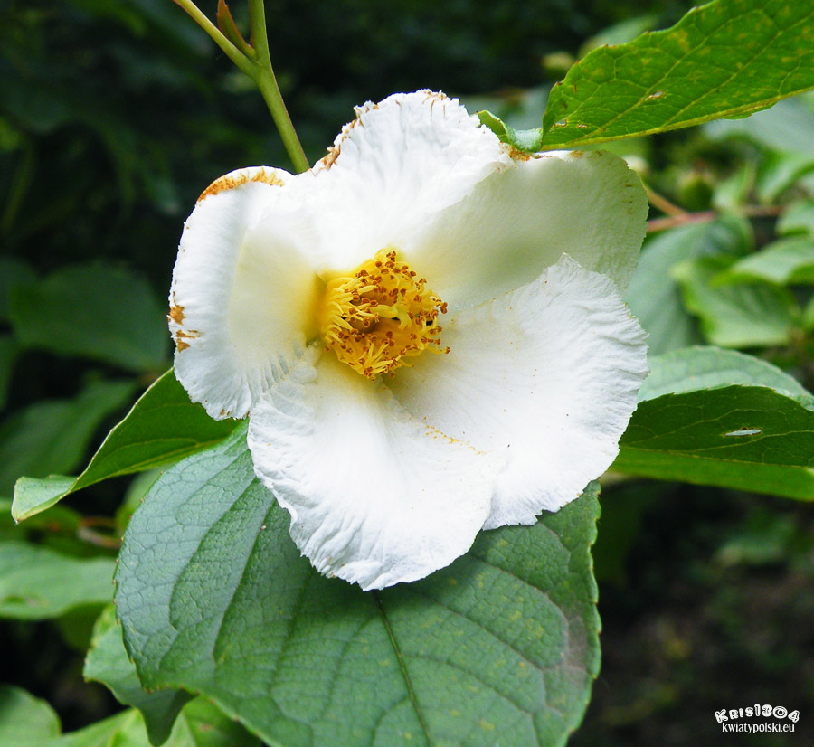 Łodygi są lekko wzniesione i delikatne. Kora na pniu i gałęziach jest czerwonawa. Łuszcząc się - odkrywa żółte, cynamonowe, lub czerwone partie kory. Drzewka stewarcji kameliowatej są najczęściej wielopniowe.