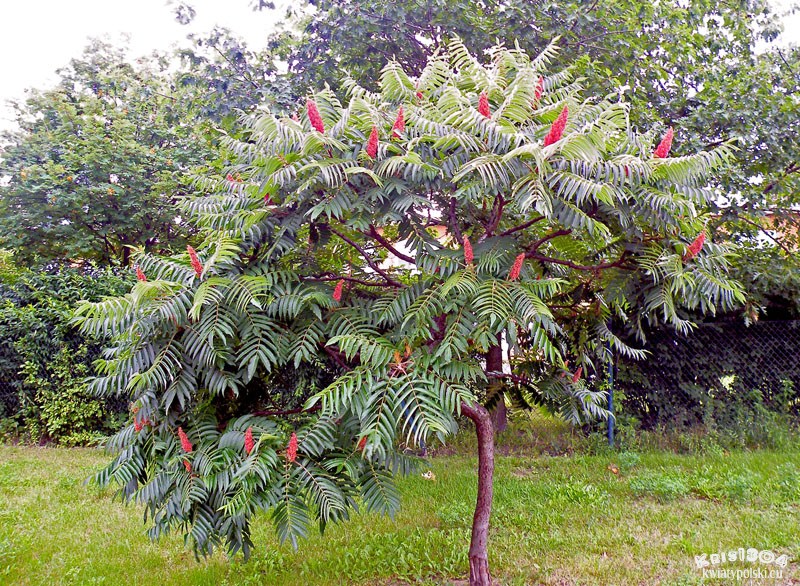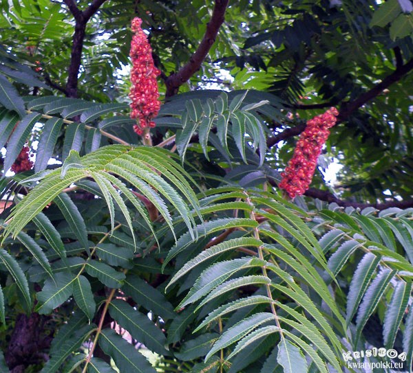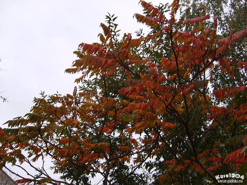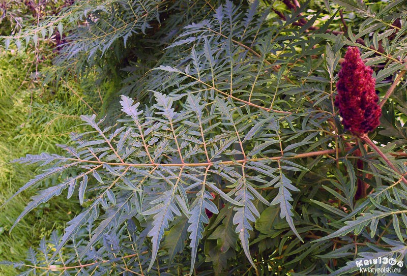 Odmiana łacińska posiada bardziej ozdobne liście. Zobacz: sumak octowiec odm. strzępolistna.