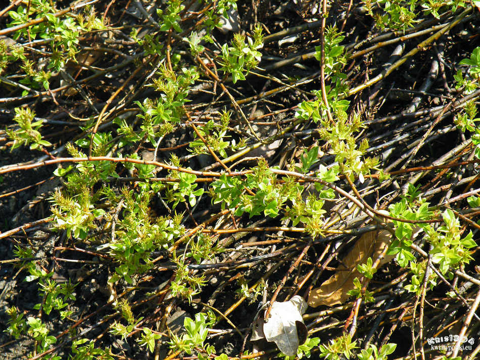 Bardzo mały, płożący się krzew. Często występuje jako tzw. krzewinka szpalerowa z gęsto rozgałęzionymi, przylegającymi do ziemi lub skał gałązkami i nielicznymi tylko pędami długimi i cienkimi.