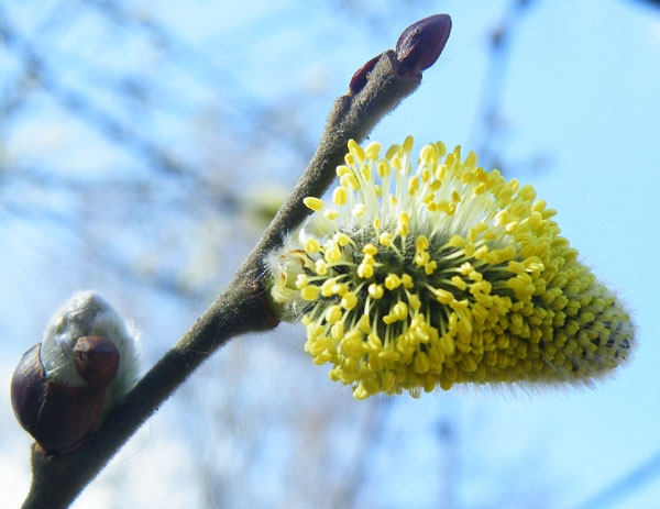 Roślina dwupienna. Wielkie kotki (bazie) ukazują się przed liśćmi, przed rozkwitnięciem otoczone są białym futerkiem włosków, pochodzącym od długobrodych przysadek i chroniącym młode kwiaty przed mrozem. Kotki mają bardzo krótkie szypuły, męskie są jajowate, 2-3 cm długie, gęsto kwiatowe, żeńskie są podłużno-jajowate, do 4 cm długości. Zalążnia na długim trzonku, gęsto owłosiona; przysadka dwubarwna, u nasady jasna, wierzchołek ciemnobrunatny do czarnego, gęsto i długo owłosiony, brodaty. Szyjka bardzo krótka, rozgałęzienia znamion wyprostowane, skłaniające się ku sobie. U nasady kwiatu jest osadzony krótki gruczoł miodnikowy.