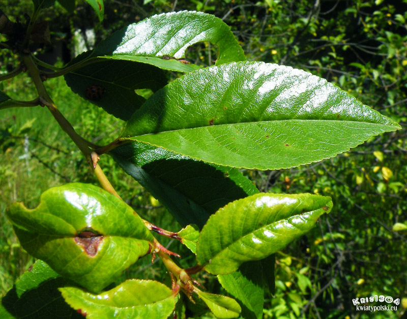 Eliptyczne, piłkowane lub podwójnie piłkowane, skórzaste i czasem błyszczące, od spodu prawie nagie, ogonek zwykle z 1-2 gruczołkami.