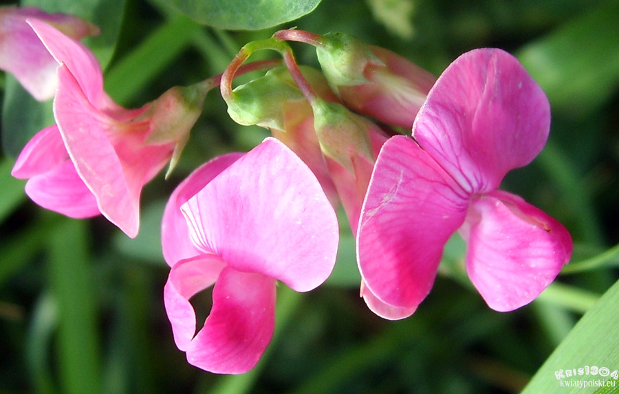 Kwiaty zebrane w 1-3 kwiatowe grona. Kwiaty motylkowe o średnicy od 3 do 4 cm, silnie pachnące; o barwach białej, żółtej, różowej, pomarańczowej, niebieskiej. Osadzone w liczbie od 4 do 7 na sztywnych szypułkach.