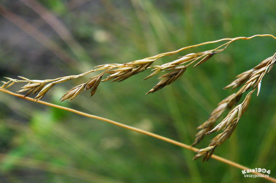 ostrogi obejmujące źdźbło. Języczek liściowy słabo widoczny do 0,5 mm długości. Blaszki liściowe skupione