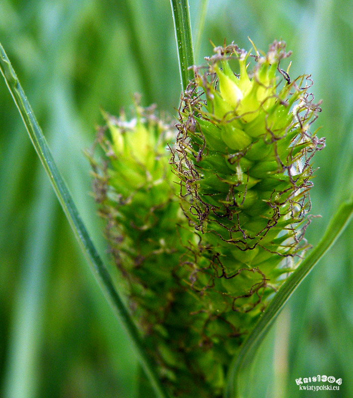 Kwiaty - kwiatostan złożony z kłosów, w górnej części z kwiatów męskich, w dolnej z żeńskich.