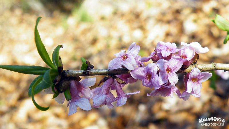 Kwiaty różowe, rzadko białe, wonne, niepozorne, czterokrotne, obupłciowe, po trzy w bliznach po ubiegłorocznych liściach,