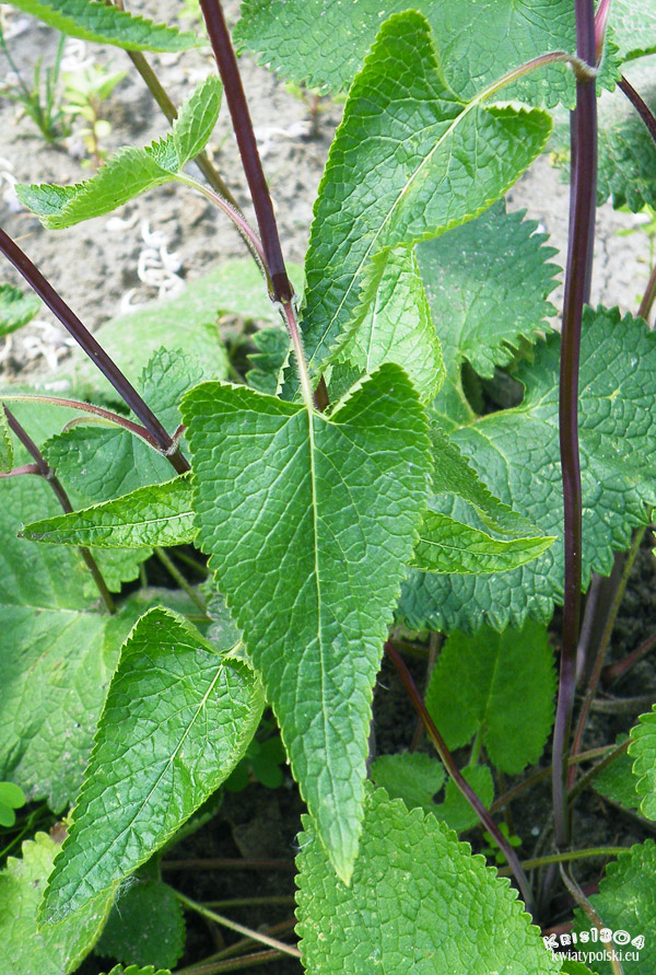 OPIS: Bylina wysokości 80 - 120 cm, o 4-kanciastej łodydze. Kwiaty wargowe w okółkach, różowate. Liście wydłużone, brzegiem ząbkowane.